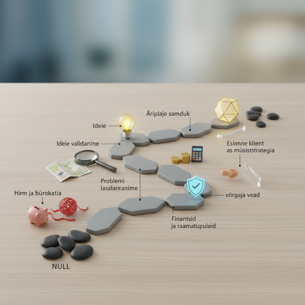 Ettevõtlusega alustamine on paljude jaoks ühtaegu nii hirmutav kui ka erutav väljakutse. See on teekond, kus vabadus ja eneseteostus käivad käsikäes vastutuse ja riskidega. Tihti lükatakse oma firma loomist edasi, sest oodatakse “täiuslikku ideed” või kardetakse bürokraatiat ja ebaõnnestumist. Tegelikkuses on aga ettevõtlusmaastik Eestis üks maailma soodsamaid ning digitaalsed lahendused on teinud firma asutamise ja haldamise lihtsamaks kui kunagi varem. Käesolev juhend on koostatud selleks, et aidata sul navigeerida esimestes sammudes, alates idee valideerimisest kuni esimeste klientide leidmiseni, ning mis kõige tähtsam – aidata sul vältida neid karisid, mille otsa algajad ettevõtjad sageli jooksevad.